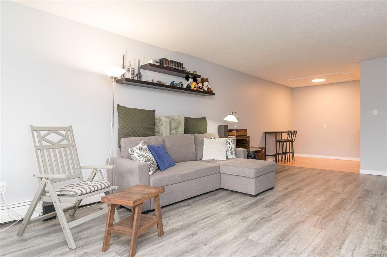 Location, Location, Location! This affordable & bright, 1 bedroom -1 bathroom suite offers views of Mt. Tolmie & Olympics across the manicured lawns of this popular bldg. Functional spacious layout. Featuring: galley kitchen, dining area, large living room leading out to a sunny south-facing balcony, large bedroom, updated bathroom, walk in entry closet/in suite storage, newer lights fixtures, and fresh paint throughout. Shared building amenities include separate storage area, swimming pool, sauna, workshop, rec room with billiards/snooker/foosball table, library, sitting area, laundry, parking space assigned by Strata, and plenty of visitor...read more