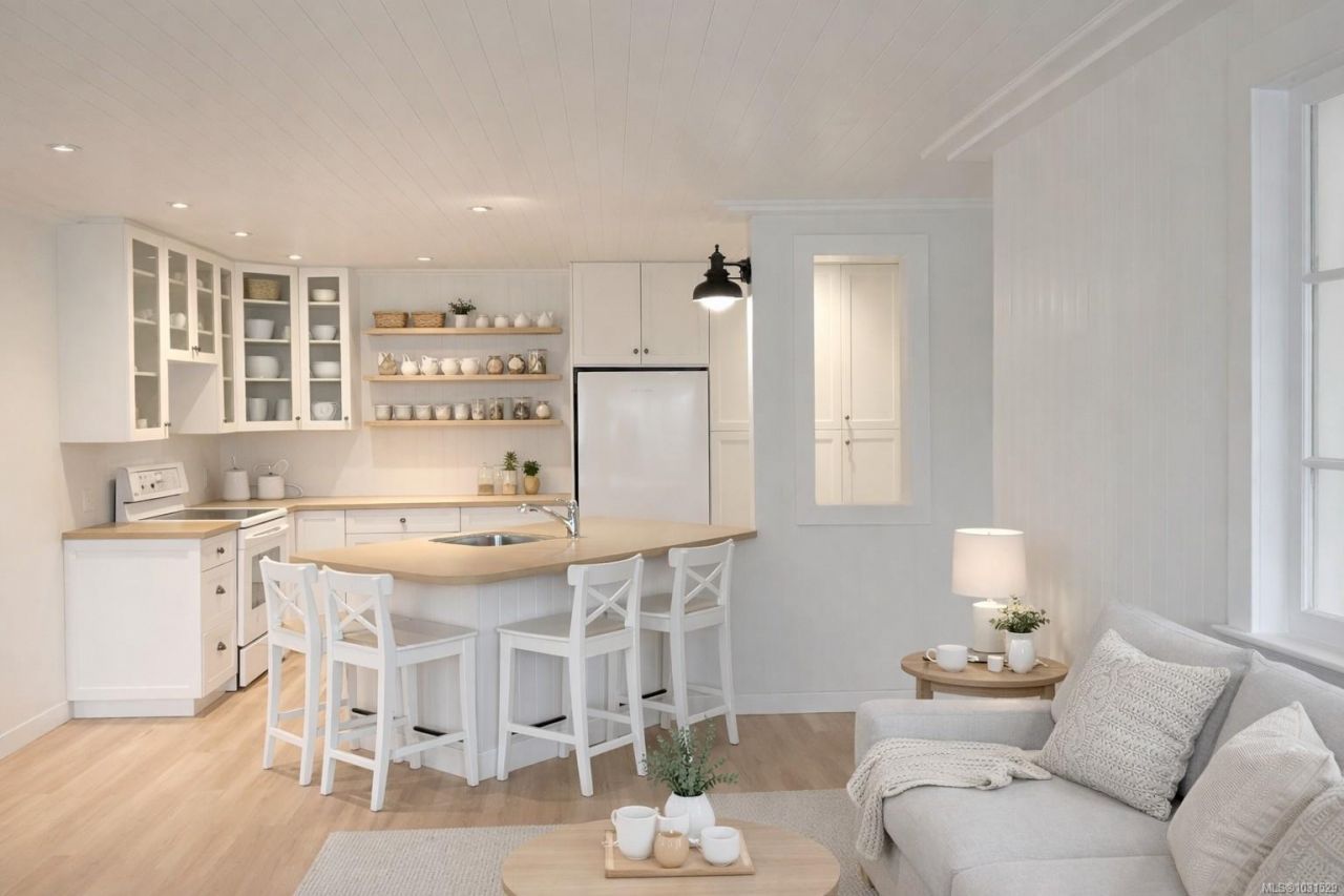 Bright, beautifully updated, and quietly charming?this 1 bed / 1 bath condo offers 716 sq ft of open-concept living in a truly special setting. Crisp beadboard detailing, clean white finishes, and brand-new wide-plank flooring create a fresh, timeless backdrop, while the custom built-in banquette (with drawer storage) adds both character and function beneath oversized windows. The kitchen features a generous peninsula and ample cabinetry, flowing seamlessly into a cozy living area with electric fireplace and built-in TV feature. A modern bathroom with a sleek vanity and glass shower completes the package. Set in a meticulously maintained...read more