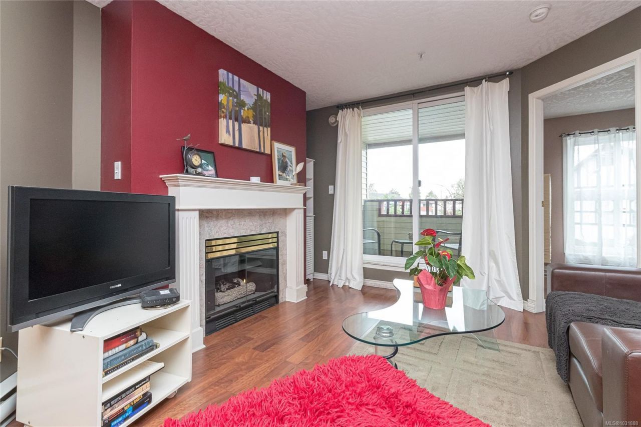 Affordability and Convenience. This west facing, two bedroom condo is centrally located and within easy commuting distance of everything that is important and spectacular in Victoria! Dark, rich, wood-like laminate flooring throughout, gas fireplace, in-suite laundry and a covered balcony for year-round use. You will appreciate new windows and patio doors, the problem free Rheem double hulled hot water tank and your puppy will love the enclosed exterior dog run area. This unit is also one of the few in the building that offers two secure parking stalls.